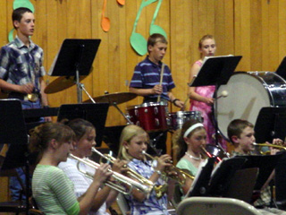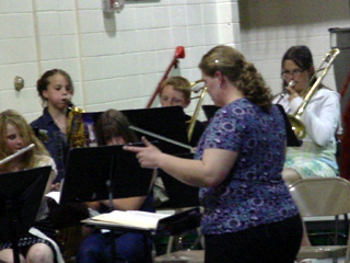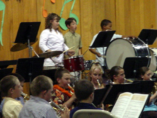 grade music group and Wendy Stauffer leading the 7th-8th grade band.