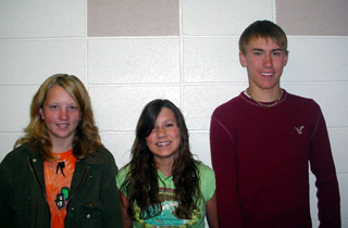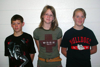 Prairie Middle School held a Science Fair on May 22nd. 5th and 6th grade students participated in the Mars Rover program on May 5th and some of the students displayed their rovers as Science Fair projects. 7th and 8th grade students displayed a variety of projects expressing their understanding of Physical, Biological, and Chemical Science.. Thank you to Bruce Nuxoll, Rhonda Wemhoff, and Greg Deiss for judging the projects. Grade 5 - 1st place - Leah Holthaus - How many pennies can an aluminum boat hold?; 2nd place – Kayla Duclos – Steamboat; 3rd place – Kelzey Dvorak – How much weight can a balloon hold? Grade 6 - 1st place – Kody Duclos – How to build a robot grabber; 2nd place – Claire Whitley – How color affects taste; 3rd place – Kendall Schumacher – Does salt water boil faster than water? Grade 7 - 1st place – Cody Schumacher – How to test fishing line; 2nd place – Troy Lorentz – Separating hydrogen and oxygen; 3rd place – MaKayla Schaeffer – Changing the freezing rate of water Grade 8 - 1st place – Danielle Cochran – Gristmill; 2nd place – Lauren Beshears – Ping pong ball launcher; 3rd place – Devin Schmidt – Post puller. Fifth grade winners in the Middle School science fair are Leah Holthaus and Kayla Duclos. Not shown is Kelsey Dvorak. Sixth grade winners in the science fair are Kody Duclos, Claire Whitley and Kendall Schumacher. Seventh grade science fair winners were Cody Schumacher, Troy Lorentz and MaKayla Schaeffer. Eighth grade science fair winners were Danielle Cochran, Lauren Beshears and Devon Schmidt. |