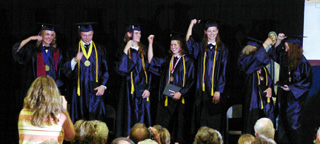 after receiving their diplomas. From left are Amber Nuxoll, Jacob Uhlenkott,