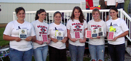 PHS Softball awards were given out last Wednesday evening. From left are Hilaree VanderPas, rookie of the year; Tiffany Schaeffer, one of 4 Gold Glove winners; Meghan VanderPas, most valuable; Kara Guyer, Gold Glove; Rachel Kaschmitter, most improved, most inspirational and Gold Glove; and Brooke Holthaus, Gold Glove. |