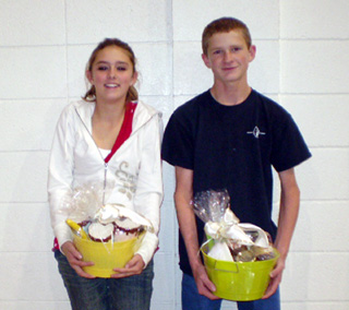 shown with their ice cream prize baskets, were Kayla Frei and Kyle Bower.