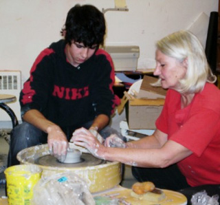 clay to make a pot. Bodine helped student, Ryan Dalgliesh, with centering