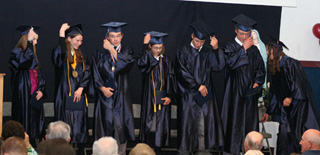 tassels after they all received their diplomas From left are Lauren Chmelik,