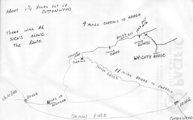 The Idaho/Lewis County Cattle Association has selected Margie and the late Vern Wright and their family as this year’s Cattle Family of the Year. Please join us at the ranch on Sunday, July 27 at 1:00 pm. Potluck lunch will be at 2:00. The ILCCA will provide meat. Margie will take anyone who is interested on a short scenic tour of the ranch. Please bring your weed-free 4-wheeler if interested. See map below. You may also get directions from our website: www.ilcca.org. Signs will be posted along the way, it should take about 1 1/4 hours from Cottonwood. Call Margie at 839-2323 or Ken Forsmann at 962-3651 with questions. ![]() |