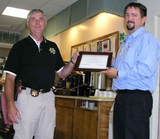 Idaho County Sheriff, Larry Dasenbrock, presents a