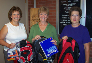 and Judy Forsman show off some of the supplies donated to the Prairie High
