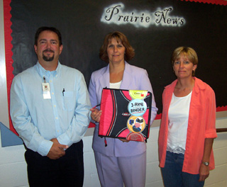 St. Mary’s HR Assistant present school supplies to Prairie Middle School’s
