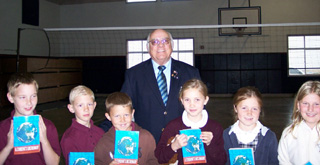 Grangeville Elks distribution of third grade dictionaries. Shown here are