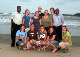 lower photo they are shown at the Indian Ocean with Fr. Gabriel at left