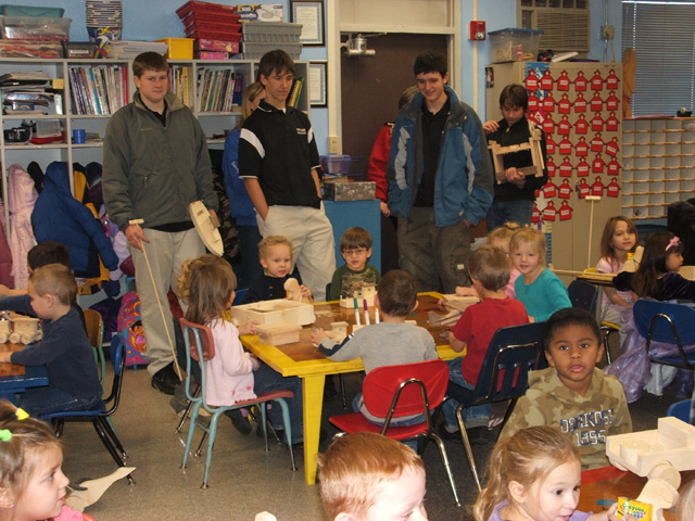 year the high school kids make the preschool children wooden toys.