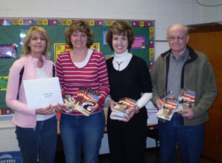 and Mary and John Funke. The Funkes have donated books to Prairie Middle