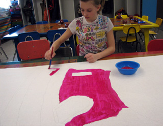 Ali Hoene is shown doing a little painting to help
