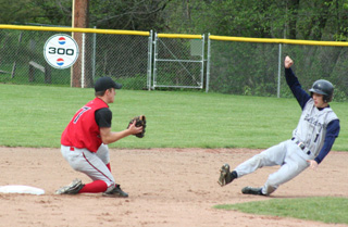 the ball and is waiting to tag a would be Genesee base stealer. Catcher