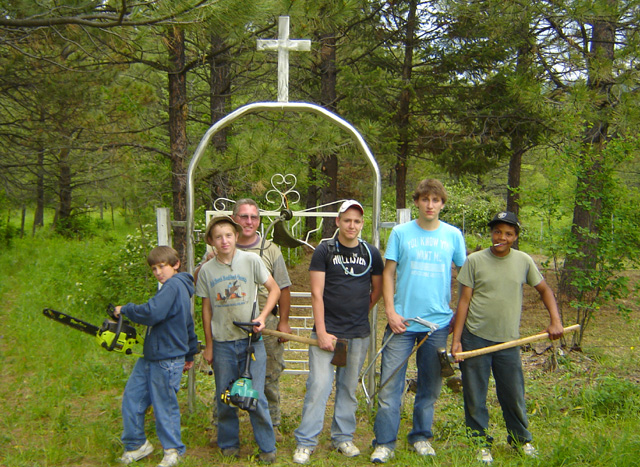 boys and adults spent much time with clippers, saws, weedeaters and mowers