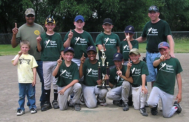 St. Mary’s Tenth Annual Golf Scramble will be held this coming Sunday, July 26th at the Grangeville Golf and Country Club. Registration is at 2:00 p.m. with tee off at 3:00 p.m. The tourney is a best ball, 18 hole scramble. According to Jim May, SMHC Development Director, there is still plenty of room for teams. Please contact May at 962-8052 or Cheri Holthaus at 962- 2327 if you have a four player team. The $50 registration fee covers green fees, dinner, and dinner for a guest; plus chances to win $5,000 and $10,000 in two hole-in-one contests and other team cash prizes. All proceeds go to benefit St. Mary’s Hospital and Clinics. The Mager Bargains Little League team won every game and took first place in the Ken Heath Memorial Tournament at Grangeville. This was their regular team from the season and they competed against and beat several All-Star squads from other communities. Shown front from left are bat boy Nick Mager, Daniel Mager, Tyler Hankerson, Clark Bruno, Cory Bahlman, and Peter Spencer, Back from left are coach Jeno Hankerson, Isaiah Shears, Zeb Elliot, Jordon Bowles, Sam Mager and head coach John Mager. Not pictured is Patrick Chmelik. Photo courtesy of Idaho County Free Press. |