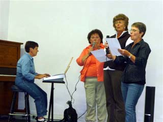 Over 270 people gathered together at the Ferdinand Hall on Sunday, October 11th to honor and show appreciation for our beloved parish priest, Father Richard Haldane. This potluck event was a huge success, and everyone there appreciated the beautiful fall weather out-of-doors as well as the friendly and familiar faces gathered indoors. People of all ages arrived around noon and settled in for a delicious variety of food, desserts, and beverages. As a special surprise for Father, there was also a variety of entertainment from many different venues spanning many different ages. Norm Sonnen stepped out of the kitchen and into the role of emcee and introduced each individual act. To begin with, Gina Seubert sang one of Father’s favorite songs, “On Eagle’s Wings” while accompanied by Kathleen Stubbers on the piano. Next, three of Prairie Elementary’s fourth graders, Molly Schwartz, Anthony Karel, and Jacob Stubbers, were led by Laurie Karel as they played “Old McDonald Had A Farm” and “Amazing Grace” on their recorders. Maria Behler, a fourth grade student at All Saints in Lewiston with family ties to the prairie, performed an inspiring and beautifully choreographed dance to the music of Josh Groban. After Maria finished her dance, three of the youth leaders from Vacation Bible School, Brooke Schumacher, Michael Rehder, and Savannah Prigge, led a parade of very enthusiastic children in three of the most popular songs from this summer’s VBS camp. Afterwards, Bonnie Gehring played the keyboard while Jeanne Arnzen, Kathy Rehder, and Sally Rehder sang their own version of “Where, Oh Where Has My Buddy Gone?” in honor of Father’s dog. Finally, local sisters from Xi Beta Rho made a special appearance and did their version of “Hail Holy Queen” and “My God” as seen on the movie, “Sister Act.” It was a great way to show off some of the talent in our parish while also gathering to celebrate Father, friends, and good food. We have been blessed with Father’s presence here on the prairie, and we all were grateful for the chance to show our appreciation for all he does.