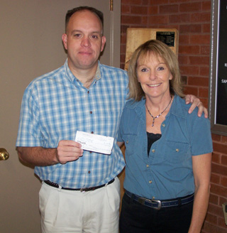 PHS football coach Travis Mader accepts a check