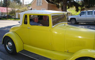 and Bill Munger riding around town in Munger’s bright yellow 1929 Model