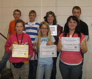 at Prairie Middle School. They are Drew Cochran, Lucas Arnzen, Emily McHugh,