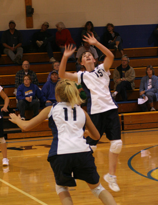Summit Academy has 13 girls out for volleyball this year and had their first match this past Monday at Nezperce. Players on the team this year are seniors: Jamie Chmelik and Rachel Wemhoff. Juniors: Courtney Schwartz, Savanah Prigge and Nicole Frei. Sophomores: Julia Osborne, Cassidy Stubbers and Brooke Schumacher. And Freshmen: Nicole Wemhoff, Alexandria Rockwell, Abigail Chmelik, Sarah Chmelik and Rachael Frei. Julie Schumacher will be the coach this year. She coached the team in previous years but Shirley Stubbers was coach last year. The remaining schedule for the season is on page 4. From left Cassidy Stubbers, Rachel Wemhoff and Nicole Frei get ready for a serve from Nezperce. Photo by Steve Wherry. Nicole Frei is ready to make a set as Cassidy Stubbers, 11, gets into position for a spike. SUMMIT GIRLS VOLLEYBALL SCHEDULE FOR 2010 31-at Orofino, lost 9-Prairie/Troy at Prairie 10-Timberline, here, PHS gym 11-at Kendrick Tournament, V only 14-at Highland 16-Orofino, here, PMS gym 21-Deary, here, PHS gym 23-at Highland (home team) 25-Prairie JV Tournament 28-at Genesee 30-CV here, PHS gym 7-at Nezperce 12-at Lapwai |