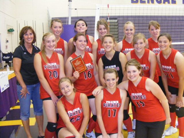 TThe Prairie Lady Pirates picked up their first win of the season as they defeated Highland in 4 games at Craigmont Tuesday, Sept. 7. Scores were 25-12, 25-20, 18-25, 25-17. The opening game was close with Highland holding a 6-7 lead before Prairie broke the game open. A missed serve tied the game and Fran Johnson served Prairie into the lead with an ace and a bump kill by Monica Lustig after Megan Sigler had raced to save a pass that was going out of bounds. After a trade of sideouts MeShel Rad served 8 straight winners with 4 aces and 2 kills by Tanna Schlader plus a kill each by Lustig and Sigler to make it 18-8. Kills from Shelby Duman, Kayla Johnson, Fran Johnson and Sigler along with missed serves by Highland helped Prairie to the 13-point win. The second game started even like the first game did except Highland was able to build a 4 point margin at 7-11. Highland was able to hang onto the lead until a missed serve was followed by a kill each from Kayla Johnson and Demetria Riener (on a back row spike) tied the score at 17. Highland scored the sideout but Duman scored a kill and Schlader served 2 aces to give Prairie a 20-18 lead. Highland scored a sideout but missed another serve to give Prairie control. An ace by Riener and a kill by Duman made it 23-19. A missed served made it 23-20 but a kill each by Duman and Rad gave the game to Prairie. Prairie took the lead early on in the third game at 8-4 and still led 14-11 when Highland turned things around. Tori Marker served 8 straight points as Highland took a 14-19 lead and then held off Prairie to win by 7. Prairie had no big service runs in the game but were able to score 3 and 4 points at a stretch while allowing no more than 2 at a time to Highland as they pulled away to the 8-point win which ended the match. Kayla Johnson wound up with 13 kills including a stuff block. Duman had 8 kills including a stuff. Rad had 7 kills including 2 stuffs and also had 5 aces. Sigler had 6 kills including a stuff, 3 aces and 29 assists. Fran Johnson had 5 kills and 5 aces. Riener had 4 kills, 2 assists and 5 aces. Schlader had 4 kills and 4 aces and Lustig had 5 assists, 2 kills and 2 aces. The JV team won all three of their games against highland by scores of 25-22, 25-14 and 15-13. Prairie scored the first point of the first game then fell behind and trailed until finally taking the lead again at 18-17 on a kill by Tyler Workman. Hope Vanator added an ace for an 18-16 lead but Highland came back with 3 straight points for an 18-19 lead. A missed serve put Kelsey Tidwell on the service line for a pair of aces to make it 21-19. Highland again answered with 3 straight points to take back the lead at 21-22 before a kill by Workman knotted the score at 22. Workman then went to the service line and served 3 straight aces to end the game. The second game saw Prairie again fall behind at 3-8 before rallying. Two kills by Workman and a kill by Kayla Frei cut the lead to 7-8. After a sideout, Workman scored a kill to put herself on the service line. A kill by Frei plus an ace gave Prairie a 10-9 lead. Prairie led just 12-11 after a missed Highland serve put Frei on the service line. 5 aces plus a dig that turned into a kill be Tidwell and Prairie was in control at 19-11. Two aces by Vanator and an ace by Keely Schmidt helped Prairie win the game by 11. Prairie jumped out to a 6-2 lead in the third game with help from 3 aces by Workman. Highland rallied back though with 6 straight points to take the lead and led by as many as 3 at 7-10. A kill by Cheryl Gehring scored a sideout and put Gehring on the service line. She served 3 aces with Beka Bruner and Tidwell each adding a kill to give Prairie a 13-10 lead. Highland pulled within 14-13 but the missed a serve to give the game to Prairie. Lady Pirates split tri-match The Prairie Lady Pirates split a tri-match Thursday Sept. 9 at Cottonwood losing to Troy in 3 games in a league match then defeating Summit in 3 games. Summit also lost to Troy in 3 games. Troy dominated the 3 game set with Prairie winning by scores of 15-25, 14-25 and 18-25. Against Summit Prairie was able to win 25-21, 25-21, 25-19. Prairie kept the first game close early, falling behind 1-4 but pulling within 4-5 after an ace by Monica Lustig. Troy then scored 7 of the next 8 points to take a 5-12 lead. The closest Prairie got the rest of the game was 14-17 after a 3-points service run by Tanna Schlader. A kill by Shelby Duman had put her on the service line and Fran Johnson and Kayla Johnson each scored a kill followed by an ace by Schlader. Prairie managed just 1 more point the rest of the game though, on a kill by Duman. The second game saw Troy pull away right from the start as Prairie had the score tied at 1 but never got closer than 6 after falling behind 4-11. In the third game Prairie had their only lead of the match when Duman scored a kill to make it 1-0. Troy reeled off 6 straight points after that and the closest Prairie was able to get from then on was 3 points at 4-7. Duman had 6 kills in the match with MeShel Rad scoring 5 including a stuff block plus an ace. Fran Johnson had 4 kills and 2 aces. Schlader had 3 kills and an ace. Kayla Johnson had 3 kills. Demetria Riener had 2 kills and an ace and Megan Sigler had 2 kills, 2 aces and 16 assists. In the JV match against Troy, held at the Elementary gym while the varsity teams were playing at the high school, Prairie fell to the Trojans 15-25, 18-25, 15-10. In the C match Prairie won 25-4, 25-17, 17-15. Against Summit the first game was close throughout although Prairie led most all the way jumping out to a 4-0 lead with Sigler serving. Summit managed to chip away at the lead and tied the score at 14 before Prairie scored a sideout and Kayla Johnson served the Pirates to an 18-14 lead. Summit called a timeout at that point and then scored the sideout and Savanah Prigge was able to serve them into a 19-18 lead before Prairie could score the sideout. Monica Lustig served Prairie