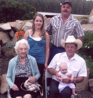 Back from left are maternal great grandparents Marvin and Janice Jackson