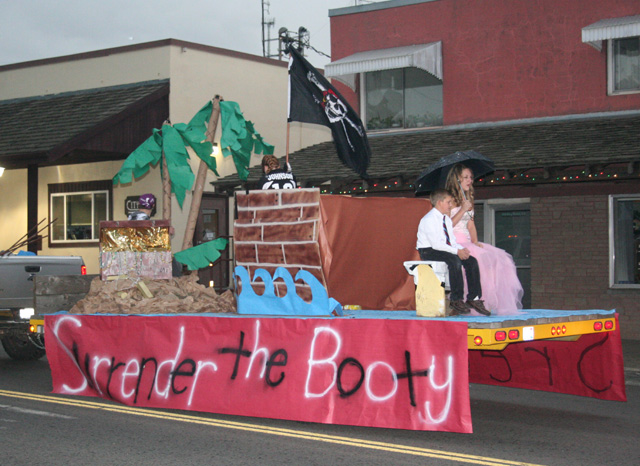 queen rides the float with her escort, Conrad Duman. Click on the photo