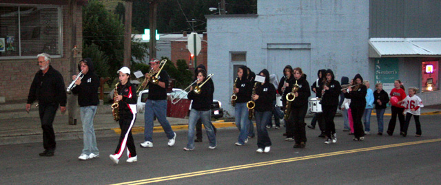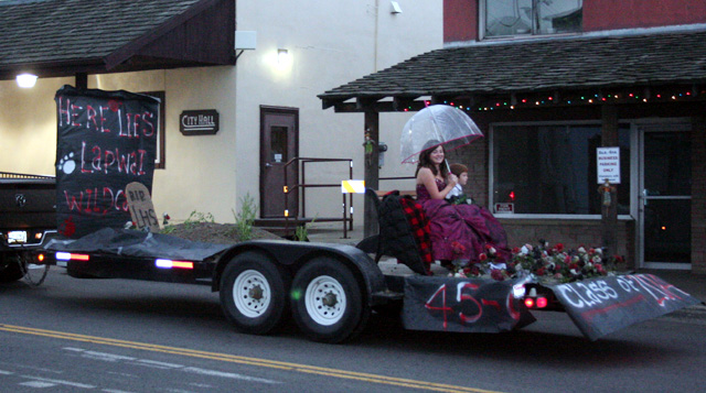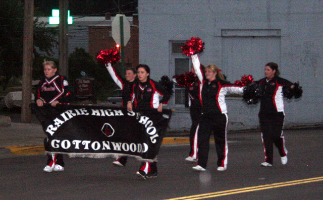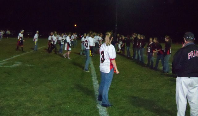 Following is the information from an extremely successful week of homecoming events: *Float winner: Seniors *Alumni information: This year recognized a few of the alumni that are in attendance at the 2010 Homecoming football game. The oldest Prairie Pirate alumnus in attendance was Judy Forsman, having graduated in 1962. The classes with the most alumni in attendance were the graduated classes of 1986 and 2010. *Queen candidates were: Meaghan Bruner, daughter of Teel and Kellie Bruner, and her escort was Cole Schlader; Francesca Johnson, daughter of Rick and Veronica Johnson, and her escort was Spencer Schumacher; Kendra Dinning, daughter of Ken and Stacie Dinning, and her escort was Drew Dinning and Shelby Duman, daughter of Jack and Cara Duman, and her escort was Conrad Duman. *King candidates were: Devin Schmidt, son of Paul and Debbie Schmidt; Brock Heath, son of Gordon Heath and Theresa Carter; Seth Guyer, son of Lynn and Sue Guyer; Justin Cox, son of Justin and Summer Yorke; Beau Schlader, son of Scot and Shelly Schlader; David Johnson, son of Ted and Theresa Schmidt; Colton Nuxoll, son of Archie and Monica Nuxoll and Ryan Dalgliesh, son of Rick and Sonia Dalgliesh *The homecoming queen and king were: King – Beau Schlader and Queen – Shelby Duman. *The overall winner of the spirit points was the senior class. The Senior Class float was judged the winner of the float competition at Homecoming. Shelby Duman, who was later crowned Homecoming queen rides the float with her escort, Conrad Duman. The Junior Class float with Homecoming Queen candidate Kendra Dinning and her escort Drew Dinning. The Sophomore class float was probably the most appropriate for the weather on Homecoming night. Queen candidate Francesca Johnson is shown with her escort, Spencer Schumacher. The Freshman Class float with Homecoming Queen candidate Meaghan Bruner and her escort Cole Schlader. The PHS Cheerleaders lead the parade. The PHS band in the Homecoming Parade. All the Homecoming Queen and King candidates are on the field awaiting the announcement of the winners. From left are Conrad Duman, Shelby Duman, Drew Dinning, Kendra Dinning, Spencer Shumacher, Francesca Johnson, Cole Schlader, Meaghan Bruner, Colton Nuxoll, Devin Schmidt, Beau Schlader, Seth Guyer, David Johnson, Ryan Dalgliesh and Brock Heath. The Junior-Sophomore team in white and the Senior-Freshman team in black at the Powder Puff Game last Wednesday. We understand the Junior-Sophomore team won big. Photo submitted by Merannda Chaffee. Another photo from the Powder Puff game. Photo submitted by Merannda Chaffee. The bonfire which was lit after the Powder Puff game on Wednesday. Photo submitted by Merannda Chaffee. |