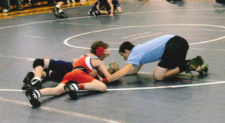 Evan Allen scores a reversal on a wrestler from HCW. All photos by Shari Chaffee. |