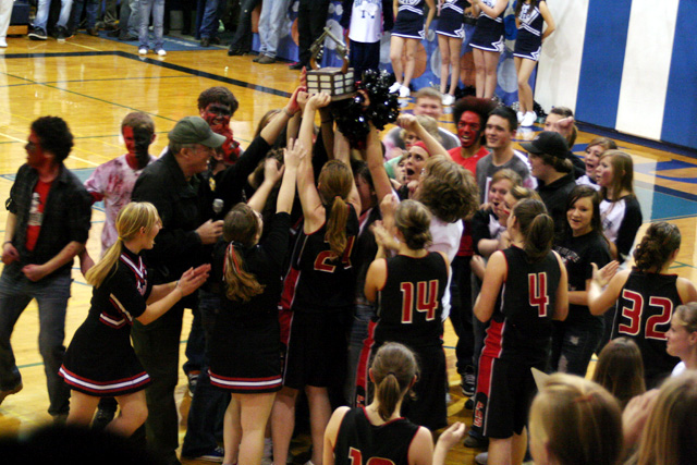 celebrate as Prairie was presented the Idaho County Shootout trophy by