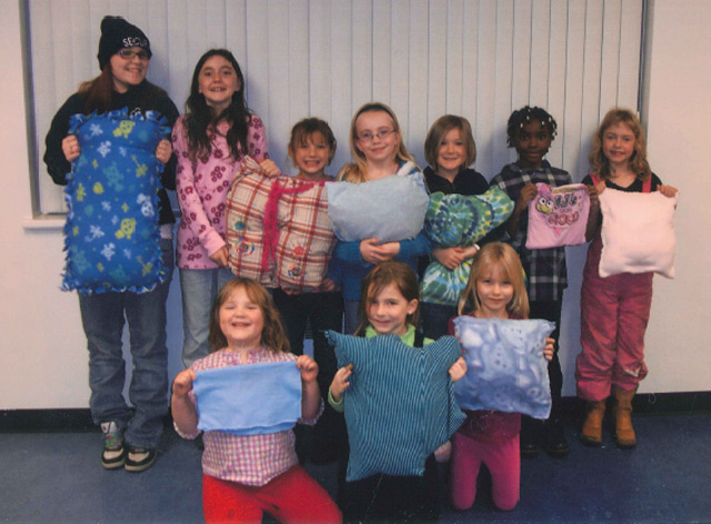 her own floor pillow. Back from left are Martina Everson, Ciara Chaffee,