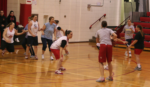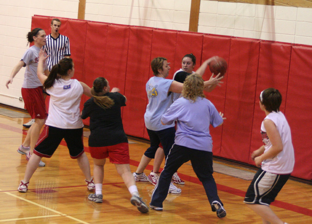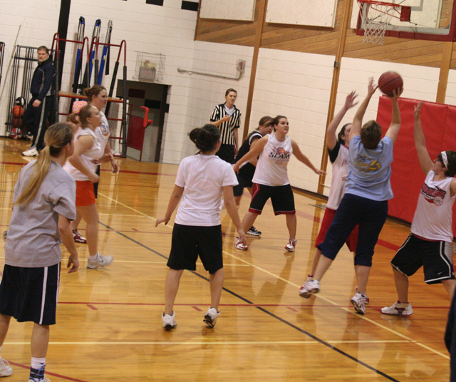 Jamie (Chicane) Scheffler holds the ball at the top of the key in the women’s alumni game. Others from left are Jennifer Enneking, Gene’ Bross, Kara Guyer, Brandy (Forsmann) McElry, Justina Zigler, Kaylee Uhlenkott, Chantel Boniecki (behind Jamie), Lori Mader and Sarah (Remacle) Walsh. Brandy (Forsmann) McElroy puts up a shot over Kaylee Uhlenkott. Other players from left are Lori Mader, Mary (Remacle) Duuck, Kara Guyer, Amber Holthaus, Lisa Forsmann, Kristi Poxleitner and Chantel Boniecki. Kaylee Uhlenkott looks to pass in the women’s alumni game. Others from left are Jamie (Chicane) Scheffler, Kristi Poxleitner, Sarah (Remacle) Walsh, Brandy (Forsmann) McElroy, Gene’ Bross and Chantel Boniecki. Teams were divided by age with the more experienced team winning 65-30. Having two former Idaho A-3 players of the year on the older team sure didn't hurt. Lori Mader, Mary (Remacle) Duuck, Brandy (Forsmann) McElroy, Lisa Forsmann, Gene’ Bross, Sarah (Remacle) Walsh, Denise (Kuther) Uhlenkott and Jamie (Chicane) Scheffler made up the winning side while Kaylee Uhlenkott, Amber Holthaus, Chantel Boniecki, NaTosha Schaeffer, Jennifer Enneking, Kristi Poxleitner, Kara Guyer and Justina Zigler made up the opposition. Mader and Scheffler are the aforementioned players of the year. The Youth Ministry sponsored the event as a fundraiser for their Mission Trip. PIRATES GIRLS BASKETBALL SCHEDULE FOR 2010-11 *indicates league game 16-Culdesac, here, postponed due to power outage to Jan. 27 18-Grangeville, here, lost 26-61 22-Orofino, here, postponed due to weather to January 3 23-Kamiah, here, lost 39-40 29-Culdesac, there, won 67-18 30-Lapwai, here*, lost 33-75 4-Genesee, there, 1 p.m., won 56-31 7-Deary here*, won 50-22 9-Nezperce, here, lost 44-37 13-Timberline, there (schedule change), won 51-37 17-Kendrick, there*, won 58-51 in double overtime 4-Summit, here 10-Orofino, there, see note above 13-C.V., here* 15-Potlatch, there, 1 p.m.* 18-Lewiston JV here, varsity only, 6 p.m., prior to boys game against Summit Academy 22-Genesee, here, 1 p.m.* 24-Kamiah, there 25-Troy, there* 27-Culdesac, here (rescheduled from Nov. 16) Jan. 31, Feb 2, 5, 7 & 9-District at LCSC Feb. 12-State Play-In game at St. Maries Feb. 17-19-State at Nampa |