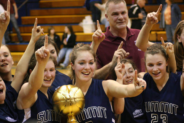 Faced with elimination after an early round loss to league champ Nezperce, the Summit Patriots put together a string of three straight wins in district competition to qualify for the third year in a row for state 1A-Division II competition. Playing at Nezperce Wednesday, Feb. 9, the Patriots took on Timberline for the second time at District, winning by a margin of 60-42. The score was relatively close in the first half with a quarter score of 17-13 and a halftime lead of 31-25. Summit pulled steadily ahead in the second half, outscoring the Spartans 16-10 in the third period and 13-7 in the fourth. Scoring and rebounding for the Patriots: Jamie Chmelik 11 and 4, Nicole Frei 6 and 2, Kayla Duclos 0 and 1, Rachael Frei 0 and 2, Sarah Chmelik 0 and 2, Rachel Wemhoff 12 and 4, Nicole Wemhoff 3 and 1, Cassidy Stubbers 0 and 0, Abi Chmelik 0 and 0, Brooke Schumacher 8 and 4, Savanah Prigge 20 and 19, and Megan Rehder 0 and 0. Prigge and Rachel Wemhoff led in the assist area with 3 and 2, while Jamie Chmelik recorded 7 steals. Rachel Wemhoff had 6 steals and a block, Schumacher had 4 steals and Prigge added 2 and a block. Nicole Wemhoff also added 3 steals and an assists. The win eliminated the Spartans and put the Patriots into another session with the Indians from Nezperce on Friday, Feb. 11. In that game Summit outscored Nezperce 8-3 over the final 2 minutes to pull out a 44-38 win and stave off elimination. Nezperce jumped out to a 6-9 lead in the first quarter but Rachel Wemhoff closed the first quarter with a basket to cut the lead to 8-9. Summit then scored the first 8 points of the second quarter to take a 16-9 lead. Brooke Schumacher did most of the damage in that run, hitting 3 shots from the perimeter. She wound up with 10 of Summit’s 18 first half points. Outside of Schumacher there was a lot of horrid shooting on both sides in the first half as Nezperce was 5 for 30 and Summit was 9 for 35, 4 for 24 if you take out Schumacher’s shooting. Summit led 18-12 at the halftime break. Nezperce came out inspired in the second half and scored the first 7 points to take an 18-19 lead but the Patriots weathered the storm and were able to take a 30-28 lead into the fourth quarter as Savanah Prigge scored 6 points and Nicole Frei 4 in the quarter. Nezperce again started a quarter strong as they scored the first 5 points of the fourth quarter to take back the lead at 30-33. After Nezperce took the 30-33 lead, Schumacher scored 6 straight points to put Summit back into the lead for good. Schumacher wound up with 16 points to lead Summit with Rachel Wemhoff and Savanah Prigge each scoring 10, Nicole Frei 6 and Jamie Chmelik 2. Prigge had 16 rebounds while Schumacher had 9, Nicole Frei 8 and Chmelik 6. Prigge and Chmelik each had 2 steals and Rachel Wemhoff had 8 assists. Michelle Seitz led Nezperce with 17 points but Summit’s triangle and 2 defense made her work hard for her points as cousins Schumacher and Rachel Wemhoff chased her everywhere she went. Summit hit 18 of 60 shots, 30%, and 8 of 13 free throws, 62%. Nezperce was 14 for 72 from the field, 19% and 11 for 19 at the line, 58%. Nezperce hit just 3 of 22 shots in the decisive fourth quarter, 14%. With the win, Summit’s first over Nezperce after 3 straight losses, the Patriots forced a winner-take-all championship game on Saturday, Feb. 12 with the winner being the District’s lone representative to the State A-1 Division II Tournament. The game turned out to be a tense one from start to finish as Summit prevailed in overtime 51-48. Nezperce built an 8-10 lead by the end of the first quarter and made it 17-23 by halftime. Jerrica Leitch did much of the damage in the first half for the Indians as she canned 4 treys and 3 of 4 free throws. Seitz added the other 8 points despite Summit repeating the triangle and 2 defense from the night before. The third period proved to be a turn-around quarter for Summit as they shut down Seitz and Leitch completely, allowing only 8 points, 2 each by Kelsie Seitz and Alli Kuther and 4 by Britni Miller. Meanwhile Summit scored 17 to take a 34-31 lead into the fourth quarter. Significant in the Summit effort was frosh sub Rachael Frei, who came in the last minute of the quarter to spell a starter and who then, finding herself wide open, coolly canned a three at the end of the quarter to give Summit their 3 point lead. With Leitch hitting 2 more threes in the fourth quarter the lead changed several times, with Rachel Wemhoff dropping a 2, Jamie Chmelik adding a needed free throw, Brooke Schumacher a goal and a free throw to counter Leitch’s treys, a 2-pointer by Kelsie Seitz, 1 by Miller and a 3-point effort by Alli Kuther that had the Indians up by 3 with a minute to go. With the clock winding down, Prigge was fouled while scoring on a short jumper. She coolly dropped in the free throw to tie the game and send it into overtime. In the overtime, Summit struggled at the line, as Nezperce fouled regularly attempting to get the ball back and put them in the lead. Ex-Summit player Savanah Kuther supplied the only firepower Nezperce could generate in the period as her two field goals proved all the Indians could come up with. Meanwhile Rachel Wemhoff did manage to hit 3 free throws and Prigge added another to counter Kuther’s 4 points. The clincher came from Jamie Chmelik as she got loose for a lay-up, then connected later on a free throw to provide the final 3-point margin. A well-rounded scoring effort by the Patriots resulted in Jamie Chmelik netting 8 points, Nicole Frei 2, Rachael Frei 3, Wemhoff 16, Schumacher 11 and Prigge 11. Prigge had 13 rebounds to lead the effort on the boards with Chmelik adding 5 and Wemhoff 4. Wemhoff and Prigge dished out 3 assists each with Schumacher adding 2 and Chmelik 1. Steals were rare in the game as Chmelik led with 2 while Wemhoff had 1 and a block. Summit was able to connected on 16 of 48 shots from the floor for 33% and managed 16 of 32 free throws, 50%. Very
