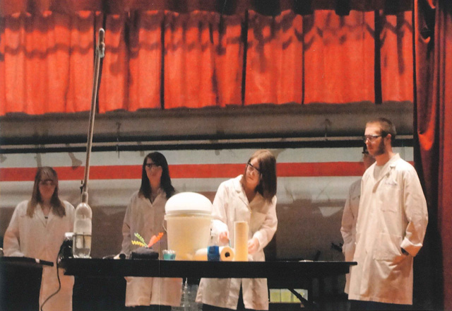 From left are Garrett Workman, Josh Zigler, teacher Darbie Duclos, Kayla