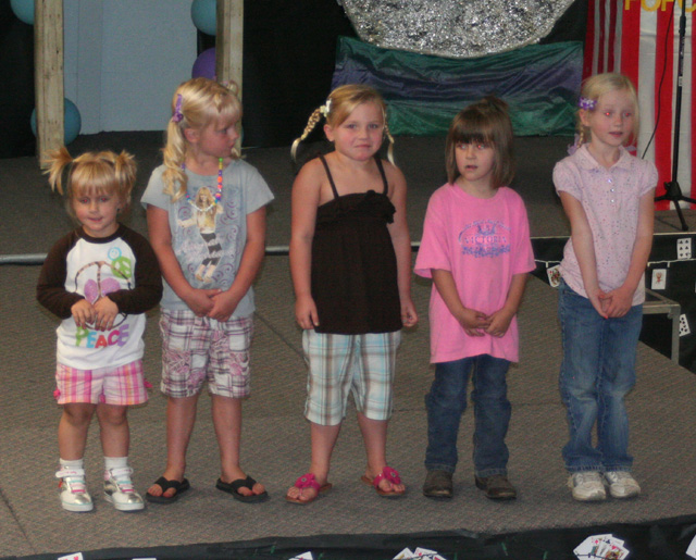 Below are the results of the Idaho County Fair Pigtail Contest held Wednesday, August 17. Most Unusual 1st Place--- Kyleigh Duclos---Daughter of Mike and Tara Duclos---age 8 2nd Place--- Ila Wilkenson---Daughter of Cody and Sara Wilkenson---age3 3rd Place---Rebecca Seubert---daughter of Nick and Molly Seubert---age 4 Ages 0-3 Longest Pigtail---Kylie Schumacher daughter of Greg and Julie Schumacher, 15½ in.. 2nd Place---Kenly Forsmann daughter of Casey and Stephanie Forsmann, 7½ inches. Shortest Pigtail---Ali Rambo daughter of Megan and Jason Rambo (3 inches). 2nd Place Alaina Lustig daughter of Bob and April Lustig (4 ½ inches) Widest Pigtail---Alaina Lustig daughter of April and Bob Lustig (1 inch) Ages 4-5 Longest Pigtail---Alexia Oxnam daughter of Derek and Kimberly Oxnam (12 inch). 2nd Jossilyn Jackson daughter of Chris and Tina Jackson (7½ inch). Tied 2nd Sarah Lustig daughter of Bob and April Lustig (7½ inches) Shortest Pigtail---Hailey Oxnam daughter of Derek and Kimberly Oxnam (5 inches). 2nd Place Abbie Frei daughter of Steve and Kristie Frei (7 inches) Widest Pigtail---Alexia Oxnam daughter of Derek and Kimberly Oxnam (1 1/4 inches), Sarah Lustig daughter of Bob and April Lustig (1) Ages 6-8 Longest Pigtail---Gloria Williams daughter of Eric and Kimberly Williams (24 inches). 2nd—Liberty Fuller daughter of Amy and Kevin Fuller (17 inches) Shortest Pigtail---Savannah Newson daughter of Heather and Jesse Newson (10 inches). 2nd—Maddilynn Jackson daughter of Chris and Tina Jackson (15 ½ inches) Widest Pigtail---Miriam Fuller daughter of Amy and Kevin Fuller (1¾ inches) The 0-3 year old contestants in the Pigtail contest. They are Kenly Forsmann, Kylie Schumacher, Alaina Lustig and Ali Rambo. Big sister is holding Ali. The 4-5 year old Pigtail contestants. From left are Hailey Oxnam, Alexia Oxnam, Jossie Jackson, Abbie Frei and Sarah Lustig. The 6-8 year old contestants. From left are Gloria Williams, Savannah Newson, Liberty Fuller, Miriam Fuller and Maddilyn Jackson. PIRATES GIRLS VOLLEYBALL SCHEDULE FOR 2011 27-Genesee JV Tournament, TBA 30-Tri-match here-vs. Summit, 5 p.m.; vs. Genesee, 8 p.m. 6-Lapwai, there 8-Troy, there 10-Kendrick Tournament, TBA 10-JV at Jenifer Tourn., TBA 13-Kamiah, here 14-JV at Sacajawea, 5 p.m. 15-Tri-match at Grangeville/Cascade, 4:30 p.m. 22-Kendrick, here 24-Prairie JV Tournament 27-Highland, here 29-Deary, here 4-Tri-match here, vs. Potlatch, 5 p.m., vs. Grangeville, 8 p.m. 6-CV, Kamiah, V only, 5 p.m. 11-Timberline, here 15, 17, 19-District at LCSC 28-29-State at Lewiston Prairie Girls 2011 Jr. High Basketball 15th—at Grangeville 20th—at St. Peter & Paul 22nd—at Asotin, 4:30 p.m. 27th—at Nezperce 29th— C.V., here 11th— Orofino, here 13th— Highland, here 18th—Kamiah, here 20th—Grangeville, here |
