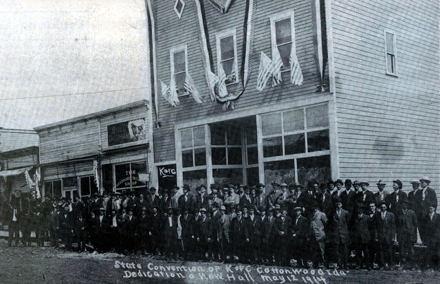 The State Convention for the Knights of Columbus was held in Cottonwood in 1914 with the new KC Hall being dedicated at that time. It stood on the north side of Main St. approx. where Forsmann Accounting now sets. Scanned from July 1, 1976 Chronicle.