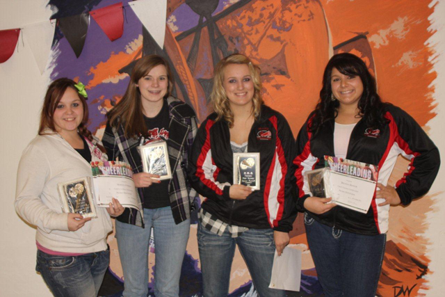Football cheerleader awards were handed out last Thursday, Nov. 3. Receiving awards were Co-captains: Breanna Bianchi, Martina Everson; Most Inspirational: Samantha Keating; Most Improved: Morgan Butler and Most Valuable: Tannor Ratcliff. Shown from left are Everson, Keating, Ratcliff and Bianchi. Not shown is Butler. Photo provided by Ryan Hasselstrom. PIRATES GIRLS BASKETBALL SCHEDULE FOR 2011-12 *indicates league game 17-C.V, here 18-Kendrick, there 22-Troy, there 28-Timberline, here 29-Potlatch, here* 2-Grangeville, hhere, Idaho County Shootout 6-C.V., there* 8-Genesee, there* 10-Kamiah, there 12-Troy, here* 16-Grangeville, there 6-Lapwai, there* 10-Deary, there* 13-Nezperce, there 19-Kendrick, here* 20-Kamiah, here 24-Summit, here Jan. 30, Feb 1, 3, 6 , 8 & 10-District at LCSC Feb. 11-State Play-In game at St. Maries Feb. 16-18-State at Nampa |
