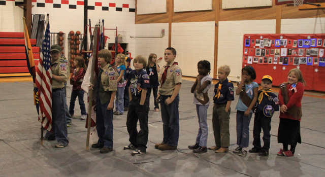 the orders. The Scout color guard, which consisted of Caleb Butler,