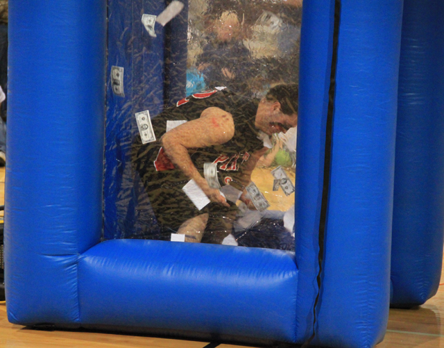 food banks for each dollar the contestants were able to grab and hold onto.