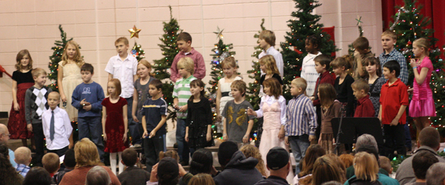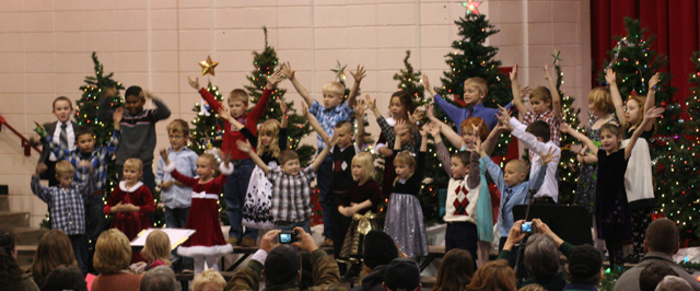 Kindergartners act out a song at the Prairie Elementary Concert.