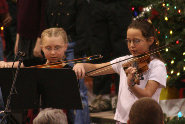 Molly Schwartz and Calli Perrin performed a violin duet of Ode to Joy and Jingle Bells.