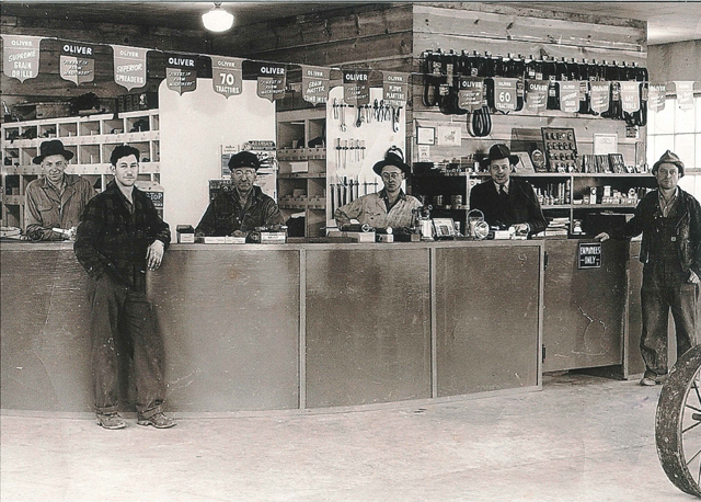 Idaho Cletrac’s parts counter circa 1951. The business was located where Mager Bargains is now. From left are Harold Wessels, Urban Riener, Clem Riener, Les Simspon, Gene Laufer and Ray Remacle. Photo courtesy of Joe Riener.