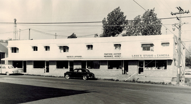 Denise Uhlenkott brought by this photo of the Kuther Building in it’s early days. As you can see Ladd’s Studio was located where later the Jaycees and currently Yalad Birthing Center are. Martzen-Kuther Insurance was located where In Touch Therapeutic Massage is now before moving one office over to what was then Hazel’s Apparel.