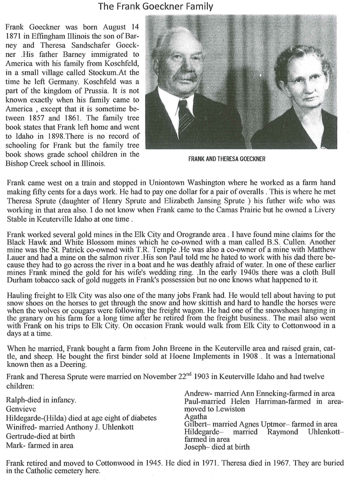 (History continued from last week) We are nearing the end of our collection of stories for the personal division of the 150-year story book. This Saturday, the 10th of March has been designated as the closing date. We want to thank all of you who have taken part in this part of our area celebration. The next meeting is set for the 15th of March at 2 p.m. at the Library. We hope to move on to the next step which will be to determine the price and conduction of the book pre-sale. Also we will try to set up some kind of schedule for the time it will take to assemble the stories into book form. We will try to stay in touch with all of you and let you know how things are progressing. Certain stories that have been in the computer and are ready to go will be published in the paper for you to preview and share our enjoyment. Sometimes , when in the right mood, we all want to recall a personal story. When this happens, what a difference it makes to share this with someone and we can see if our experience is mutual and others feel the way we do about people, places and things in general. They tell me this is why we get married or develop friendships is to share our stories or lives with people who we have things in common. It’s kind of like the question, “When a tree falls and no one hears or sees it, what’s the difference?” When two or more of us see or hear that tree fall it becomes a part of our lives and many exchanges can come from that. Most of us knew that this project was going to be a large undertaking and that, if successful, would become another milestone for all of us. By sharing all these stories, we get to know and understand each other better and our common bond becomes stronger to help us in the future. The old saying “It takes a long time to grow an old friend” really comes to bear here in that it has taken us 150 years to grow and develop this area! Sure, we don’t always see eye to eye, but we go ahead, working together, to make it better for the next generation. We learn, no only from our mistakes, but also from the many things that were done right! In these stories you will find examples of both and people like us, who lived and loved in the shadow of these great mountain. As a young man going out into Central Idaho’s wilderness to hunt and fish, I couldn’t wait to bring my wife and kids so they too could enjoy – and believe me they did! While, to say we saw it all would be impossible, it would be more likely to say we covered a lot of it, some places so often, we had names for some of the wild animals we saw! Some of these outings today include the fourth and fifth generations and they carry the same songs and stories that the grandpas and grandmas before them use to sing when they enjoyed these mountains! This then is what they call “our heritage” – this then is what they call “our legacy.” Thank you all for your part in this development and in its presentation! The old folks often mentioned “being part of the big picture.” Well, I think this is about just that. All of you have become part of the picture and we all share in this.