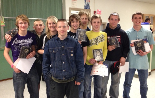 The Prairie Wrestling team recently held their awards banquet. From left are Dally Ratcliff - Most Improved, Justin Ross, Tannor Ratcliff, Hunter McWilliams - Most Outstanding, Tyler Ross - Inspirational, Joe Halligan, Alex Duman - Captain, Garrett Schmidt - Fastest Pin and Kade Perrin - Captain. 2012 PHS TRACK SCHEDULE April 24-White Pine League Meet, at Lapwai, 3 p.m. 27-Nez Perce-Lewis & Clark Games, at Kamiah, 10 a.m. 4-JV Meet of Champions, at Lapwai, 3 p.m. 11-District I/II Regionals, at Lapwai, 2 p.m. 12-District I/II Regionals, at Lapwai, 10:30 a.m. 18-1A State Meet, Mountain View HS, Meridian, 3 p.m. |