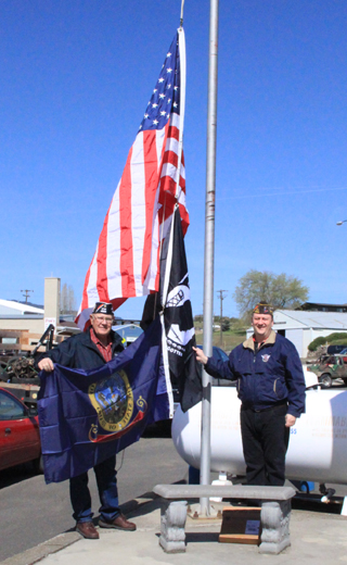 Joe Riener put up new flags on the flagpole on the corner of Nuxoll Shell