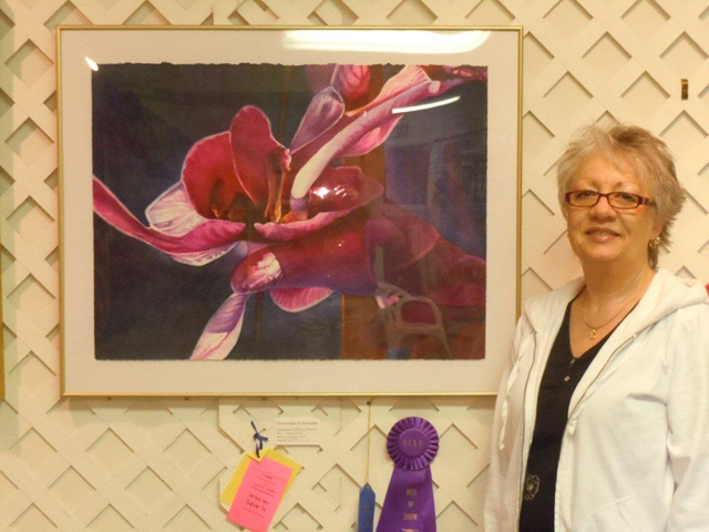 Jackie Zumwalt with her Best of Show entry at the 45th Spring Art Show at Grangeville. |