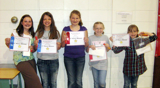 Calli Perrin second place for grade five. From left are Drew Dinning, Garrett
