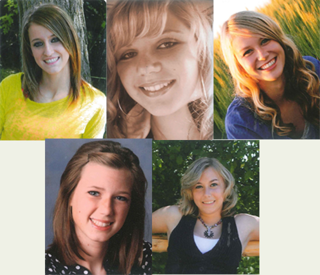 Top from left are Leah Holthaus, Whitney Sonnen and Jacey Arnzen. Bottom