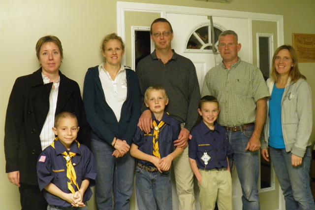Back row are parents, Brandy McElroy, Loretta and Glen Poxleitner, Scott and Tina Perrin. Front row are scouts, Colton McElroy, Morgan Poxleitner and Tage Perrin. |